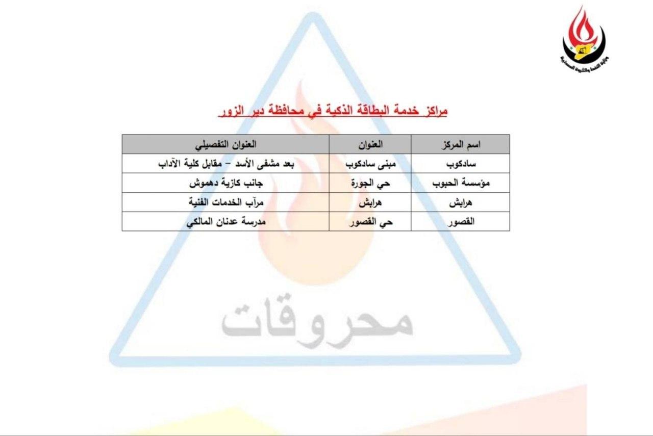 عناوين مراكز خدمة  البطاقة الذكية في جميع المحافظات  دمشق ريف دمشق  حماة  حمص  اللاذقية  طرطوس  درعا  القنيطرة حلب  ديرالزور  السويداء