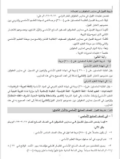 للصف السابع: 1- أن يكون مجموع الطالب في السادس1800وما فوق من 2000دون علامة المشروع او السلوك او النشاط